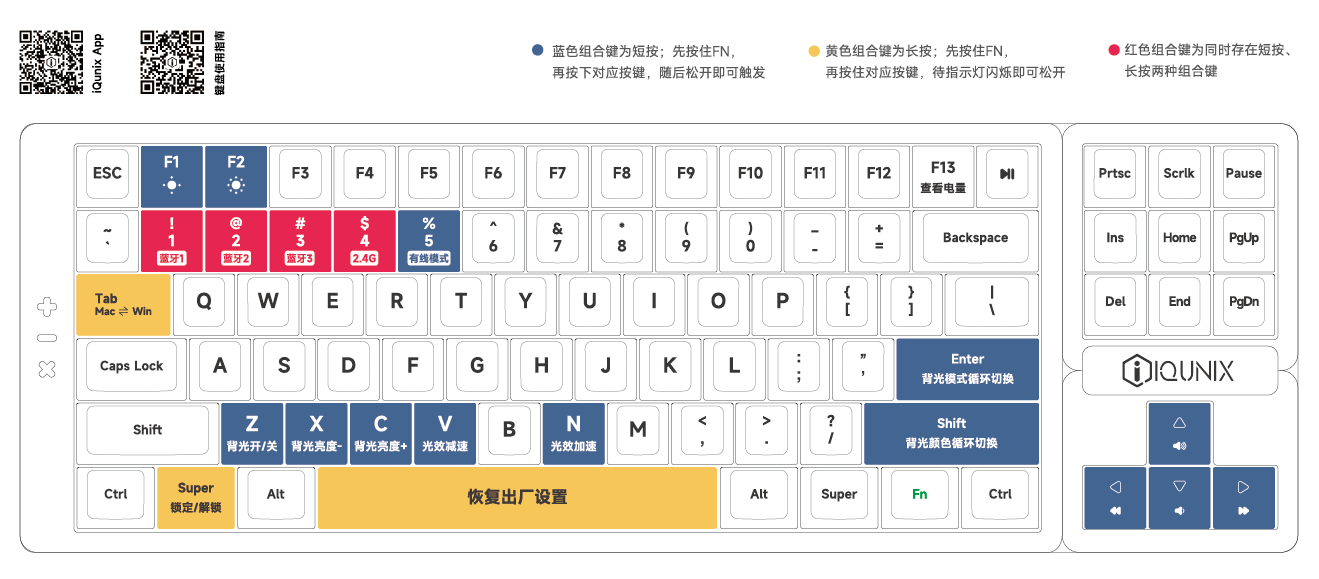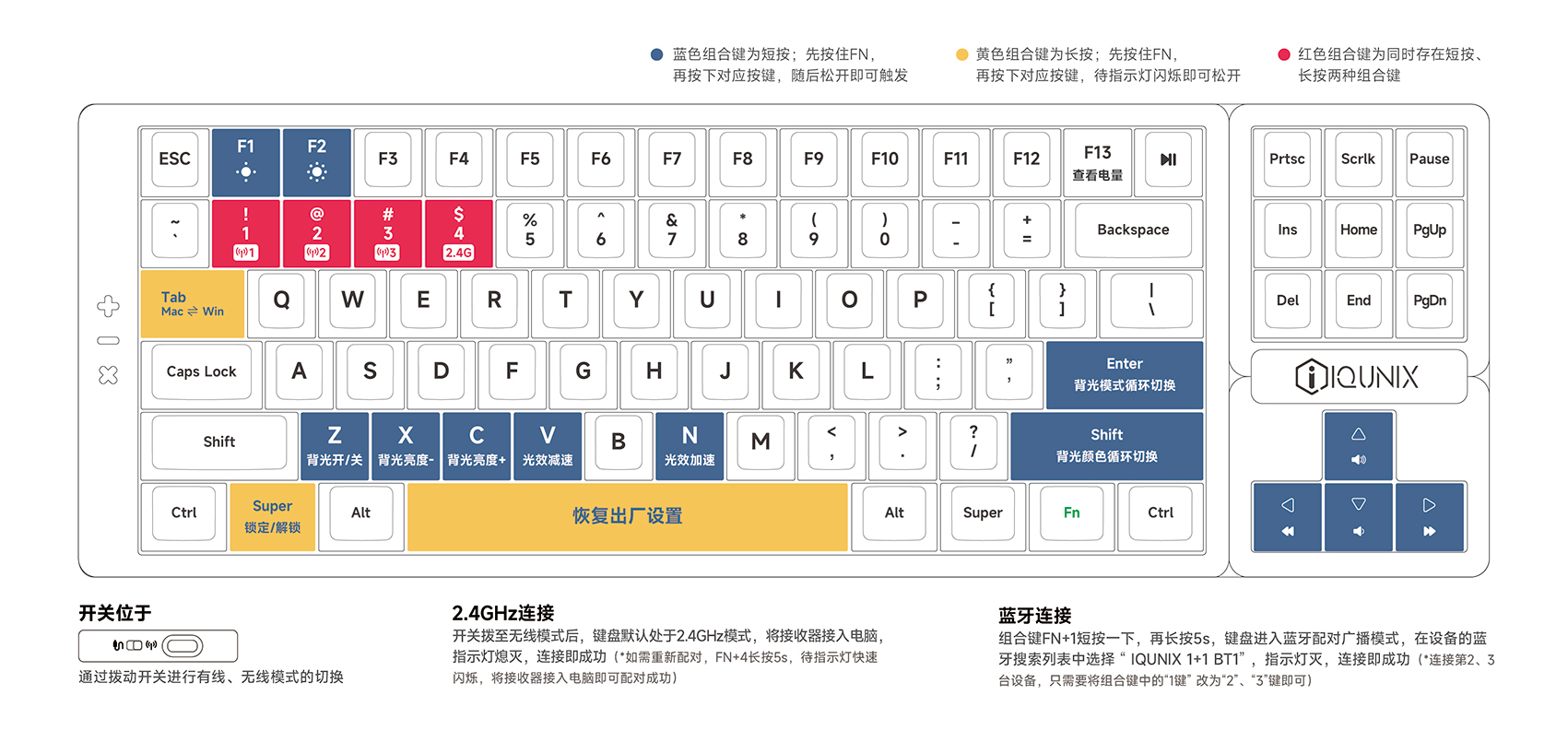 IQUNIX 1+1 BT1,指示灯灭,连接即成功。