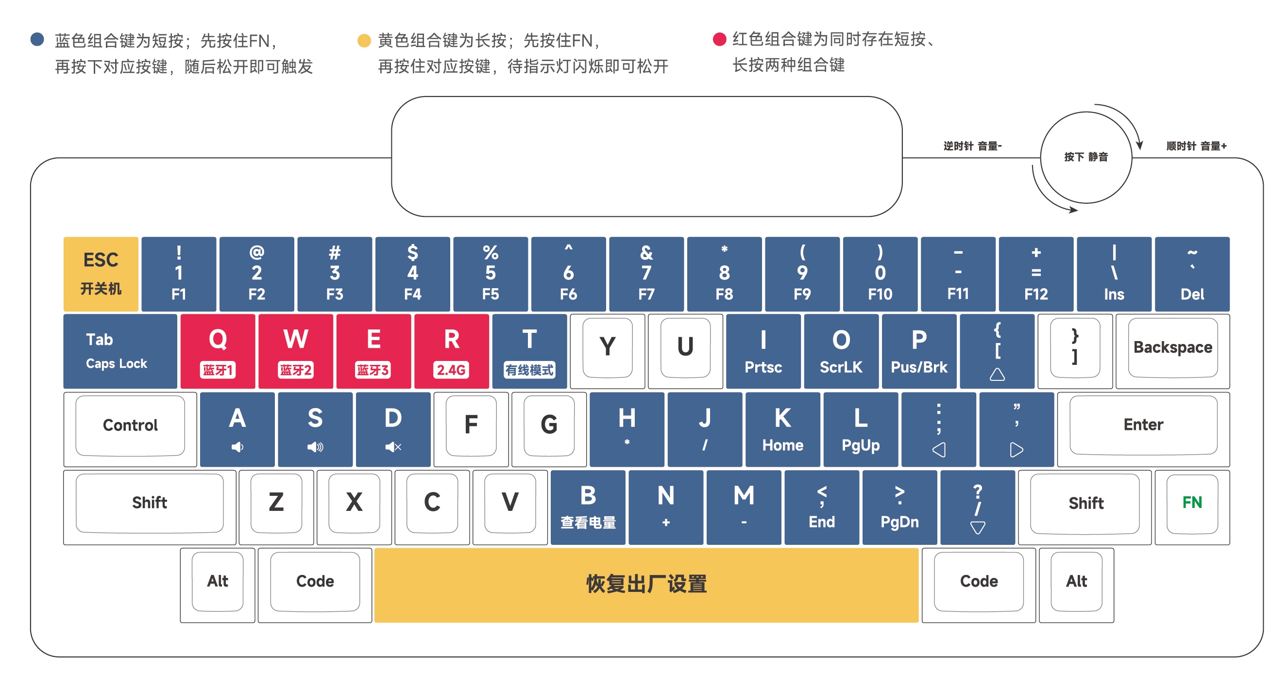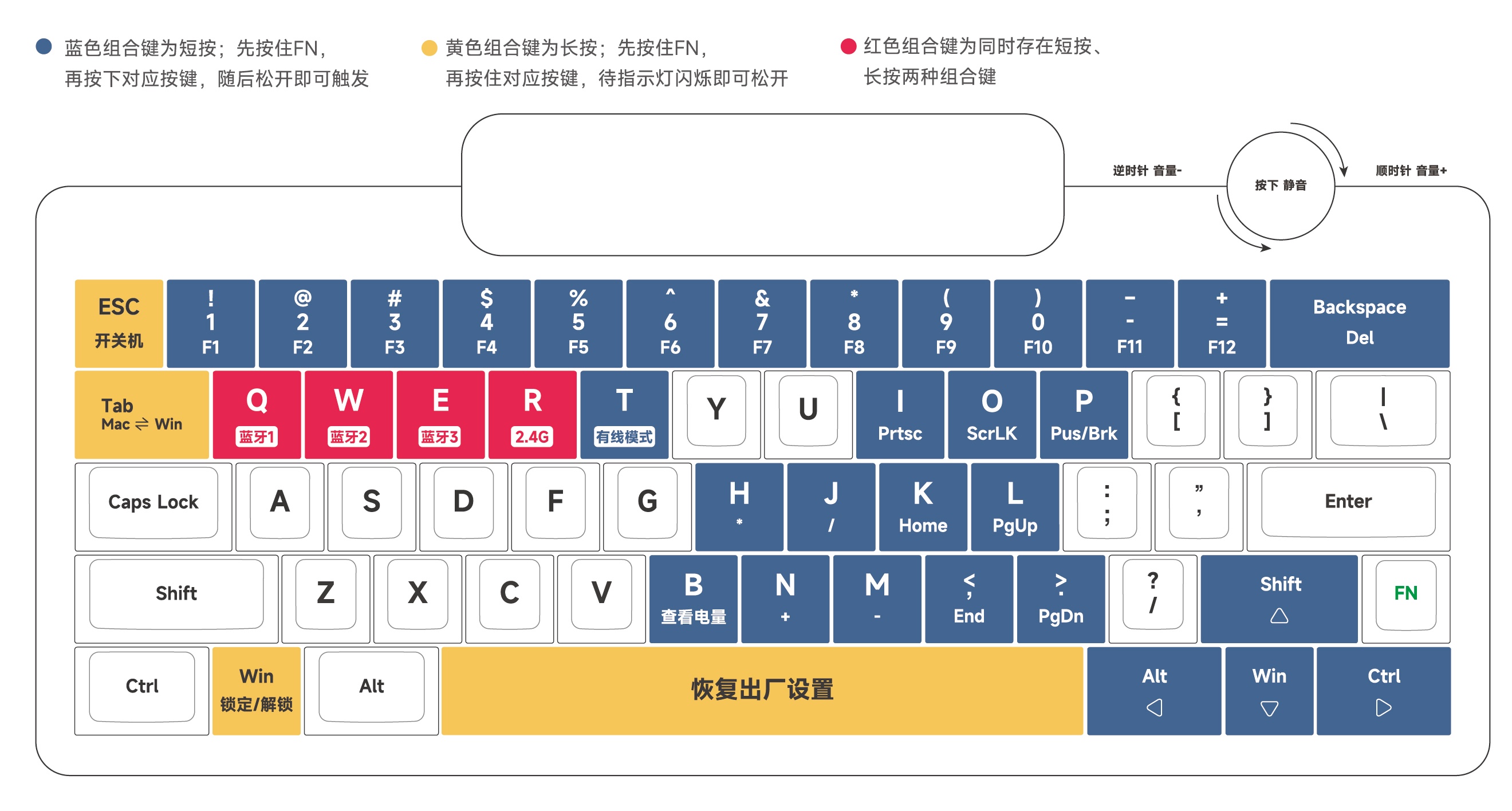 *各频道组合键对应的数字键, 蓝牙: [Q]、[W]、[E], 2.4GHz:[R], 有线:[T]